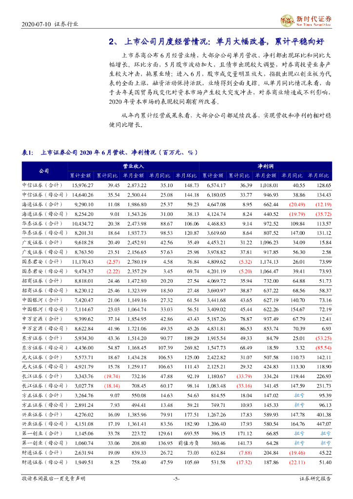 新时代证券:证券行业2020年1至6月概况:投融资市场改善推升公司业绩增长,政策红利堆积、创业板走势强劲.pdf