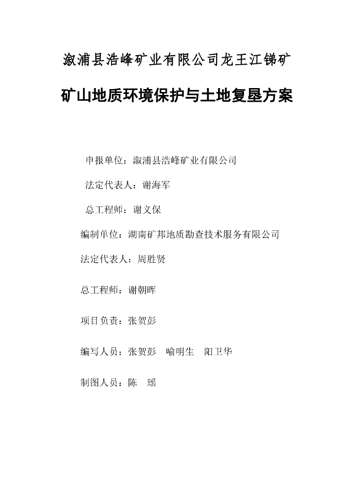 溆浦县浩峰矿业有限公司龙王江锑矿-矿山地质环境保护与土地复垦方案.pdf