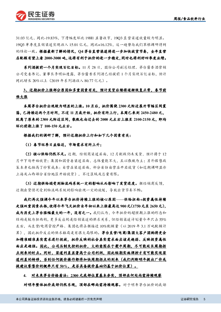 民生证券:食品饮料行业周报:飞天批价快速上涨,中炬美味鲜销售团队预计将保持稳定.pdf