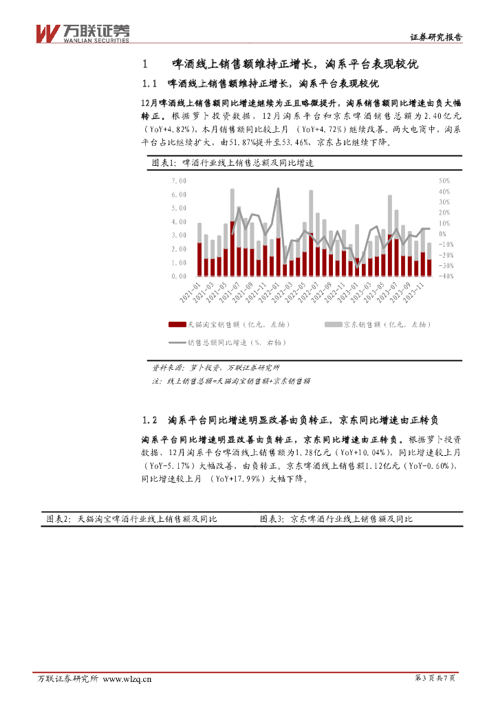 万联证券:啤酒行业12月电商数据跟踪:12月啤酒线上销售维持正增长,淘系表现较优.pdf