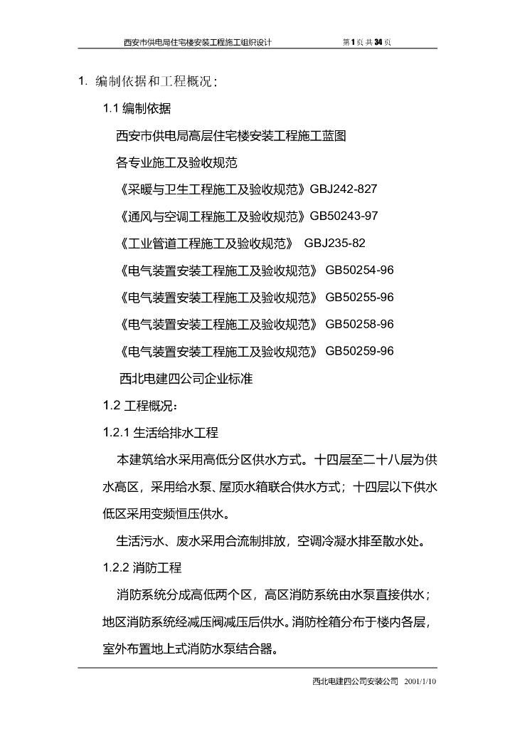陕西高层住宅楼安装工程施工组织设计方案.doc