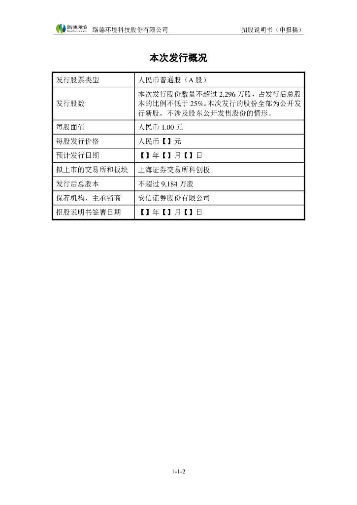 路德环境科技股份有限公司上交所科创板IPO上市招股说明书.pdf