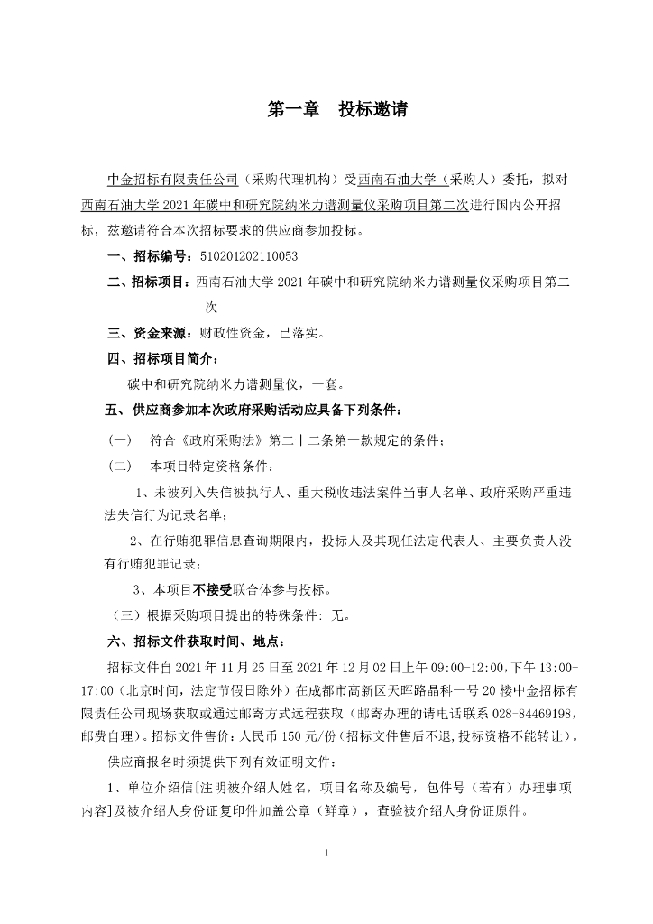 【中标】西南石油大学碳中和研究院纳米力谱测量仪第二次采购项目.pdf