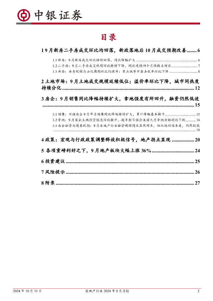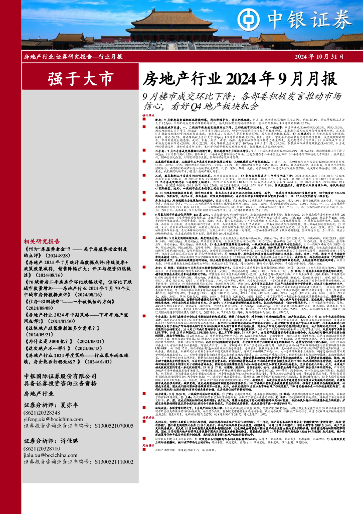 中银证券:房地产行业2024年9月月报:9月楼市成交环比下降;各部委积极发言推动市场信心,看好Q4地产板块机会.pdf