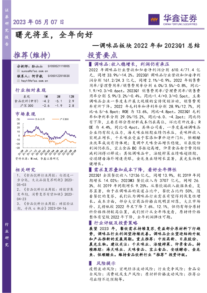 华鑫证券:调味品板块2022年和2023Q1总结:曙光将至,全年向好.pdf