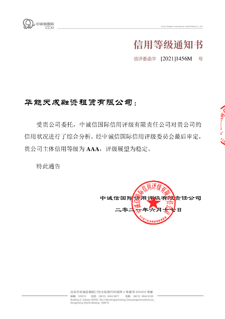 中诚信:华能天成融资租赁有限公司主体信用评级报告.pdf
