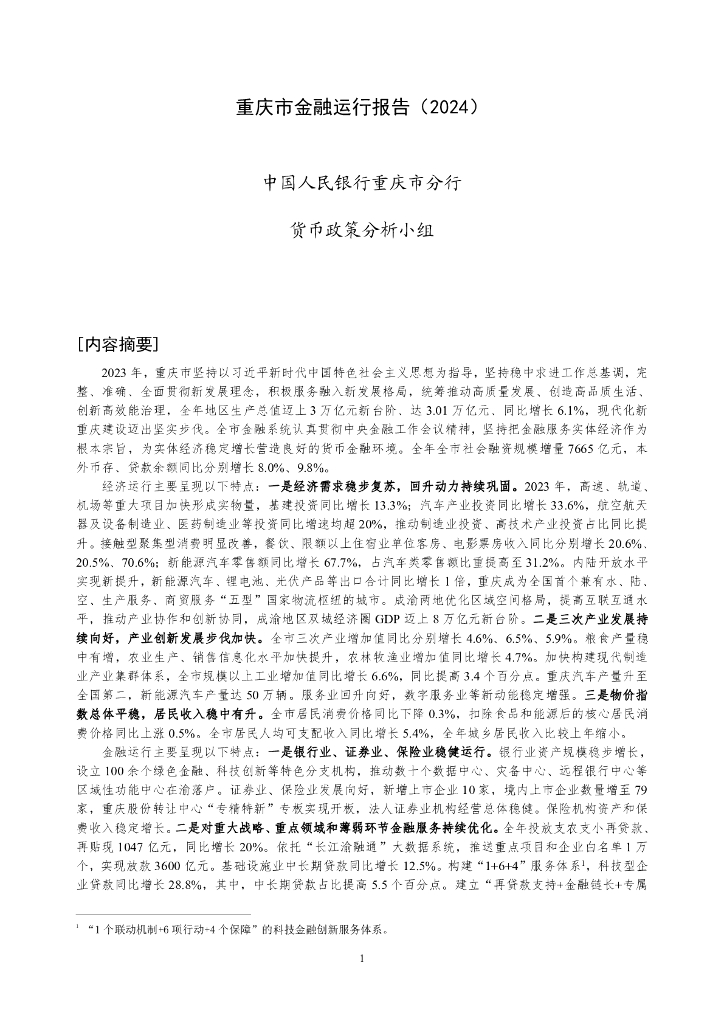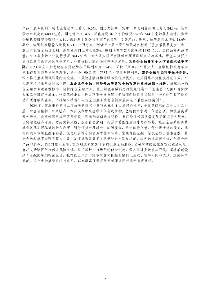 中国人民银行:重庆市金融运行报告(2024).pdf
