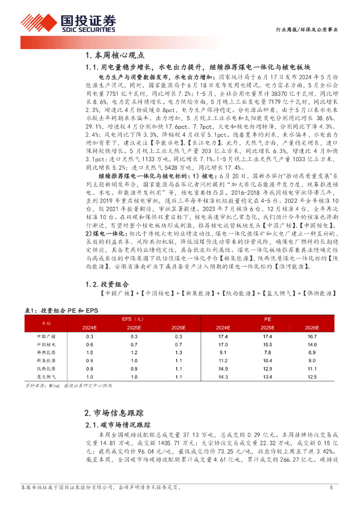 国投证券:环保及公用事业行业周报:用电量稳步增长,水电出力提升,继续推荐煤电一体化与核电板块.pdf