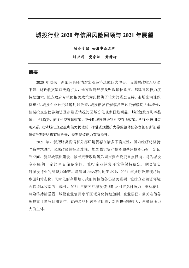 联合资信:城投行业2020年信用风险回顾与2021年展望.pdf