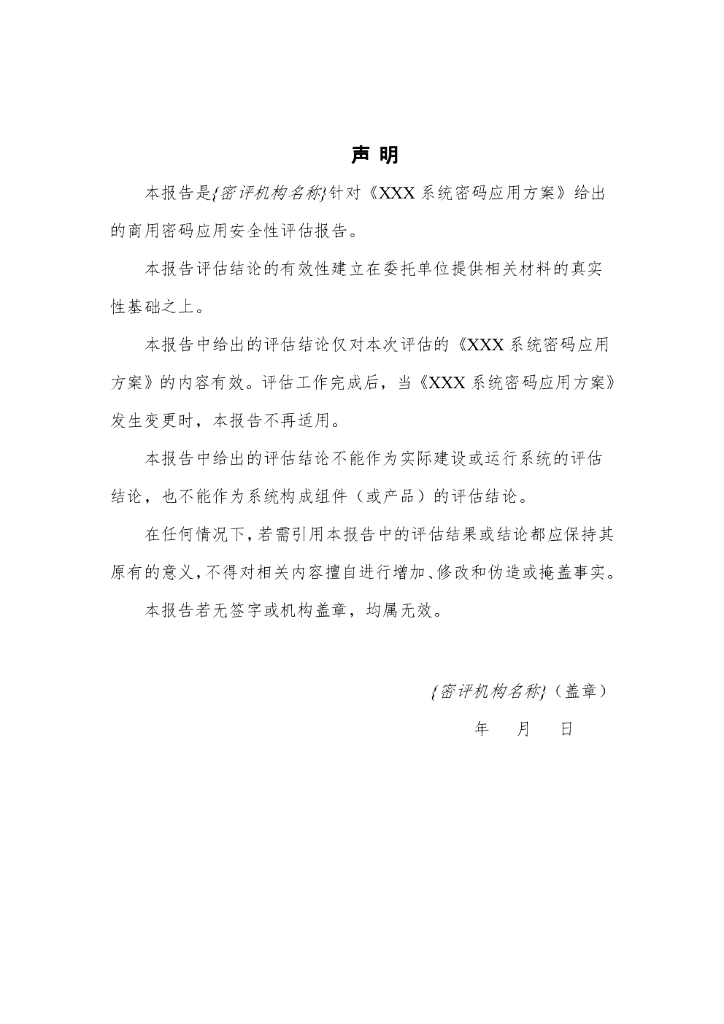 商用密码应用安全性评估报告模板(2021版)—方案密评报告.doc