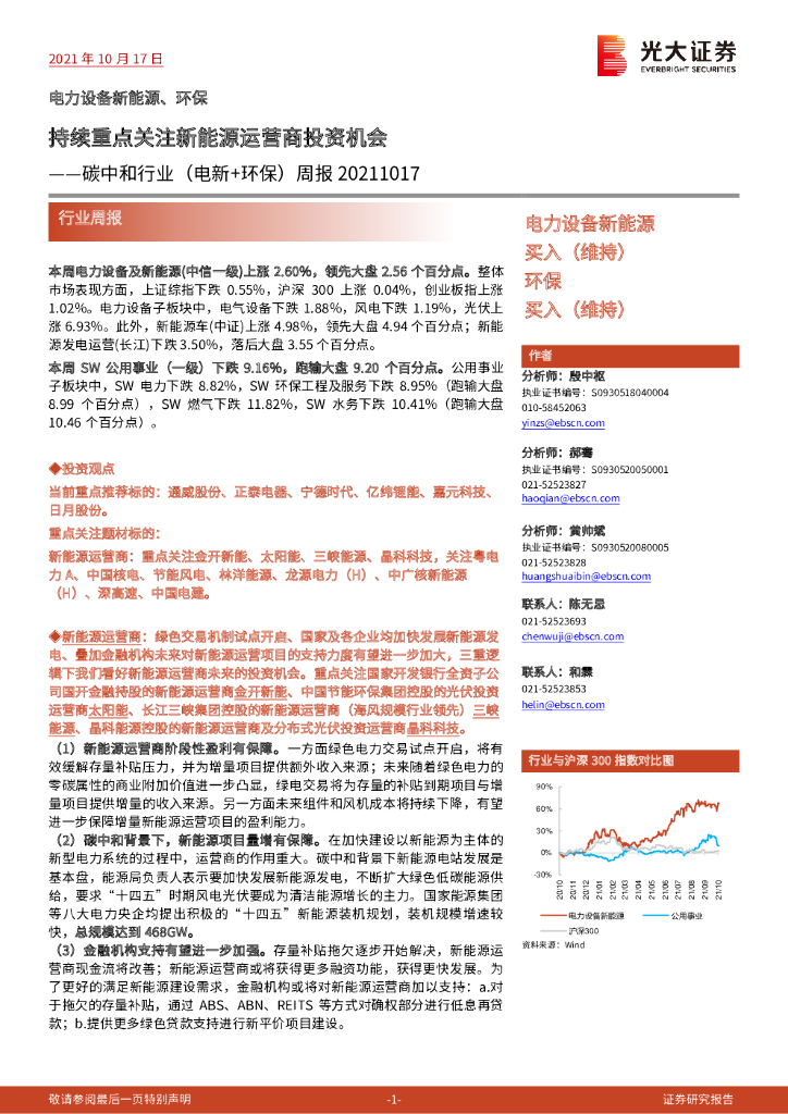 光大证券:碳中和行业(电新+环保)周报:持续重点关注新能源运营商投资机会.pdf