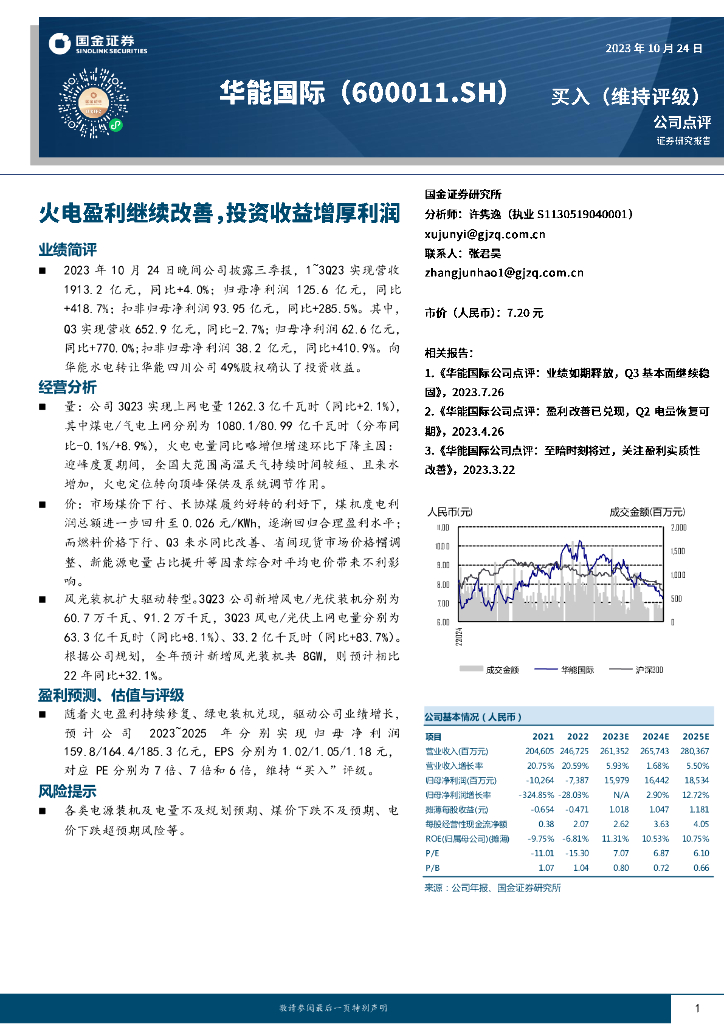 国金证券:华能国际(600011)-火电盈利继续改善,投资收益增厚利润.pdf