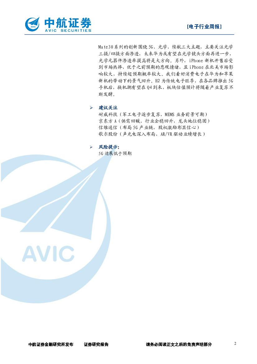 中航证券:电子行业周报:华为逆风而行,光学镜头、5G等方向未来可期.pdf