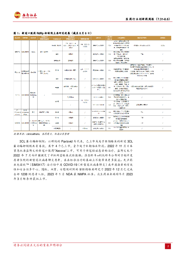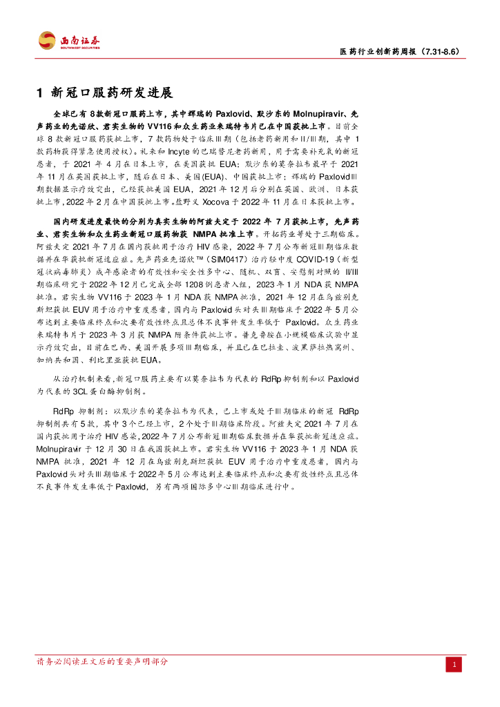 西南证券:医药行业创新药周报:2023年8月第一周创新药周报(附小专题KRAS G12C抑制剂研发概况).pdf