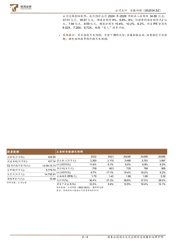 德邦证券:旺能环境(002034)-垃圾焚烧发电项目稳定运营,积极推动调价和绿证交易.pdf