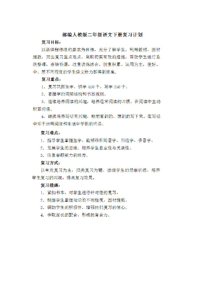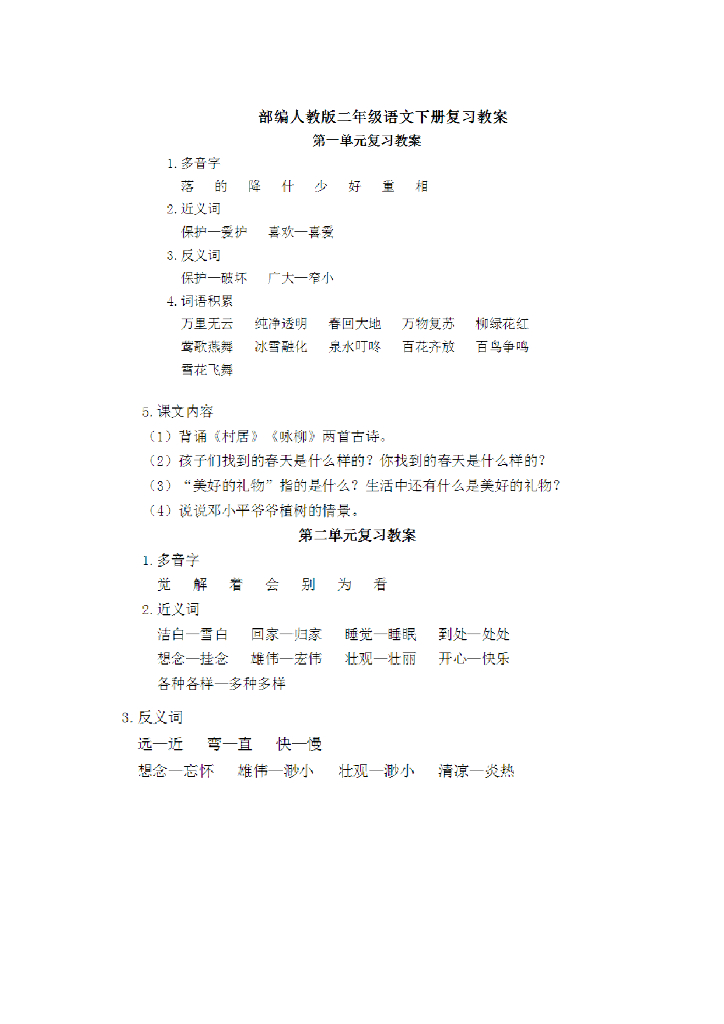 部编版二年级语文(下册)期末复习教案+计划2.doc