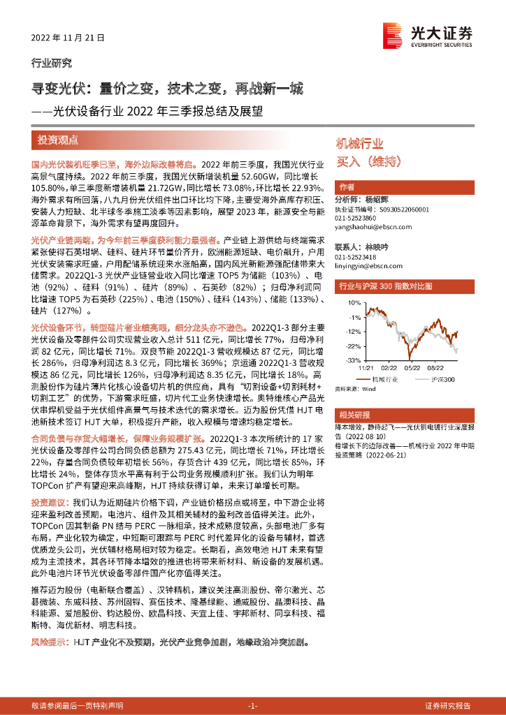 光大证券:光伏设备行业2022年三季报总结及展望:寻变光伏:量价之变,技术之变,再战新一城.pdf
