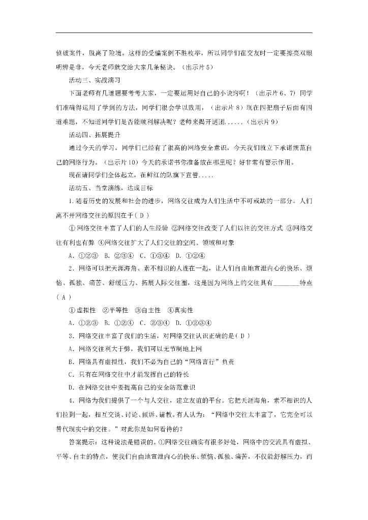 七年级上册 初中道德与法治5.2《网上交友新时空》教学设计2.doc