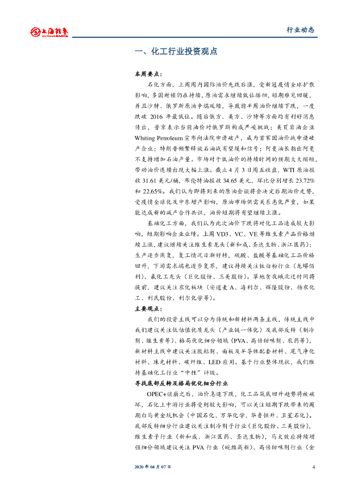 上海证券:化工行业周报:油价有望继续回升,持续关注维生素、农化板块.pdf