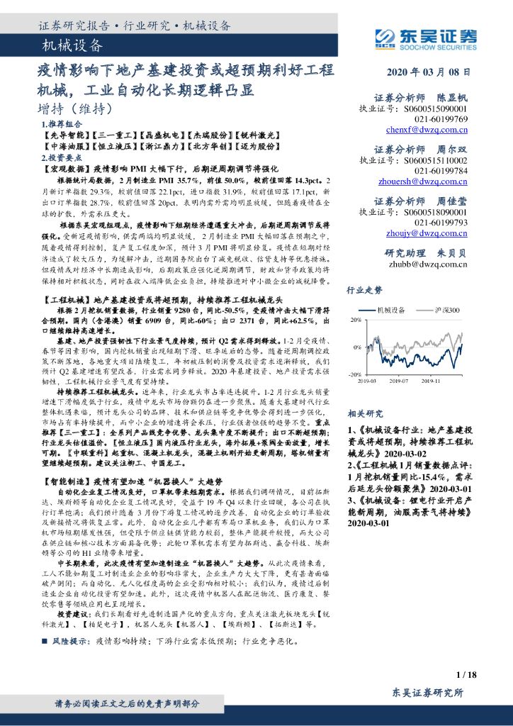 东吴证券:机械设备行业跟踪周报:疫情影响下地产基建投资或超预期利好工程机械,工业自动化长期逻辑凸显.pdf