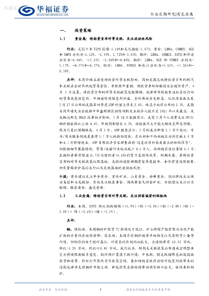 华福证券:有色金属行业周报:美对等关税落地,关注供需偏紧的铝板块.pdf