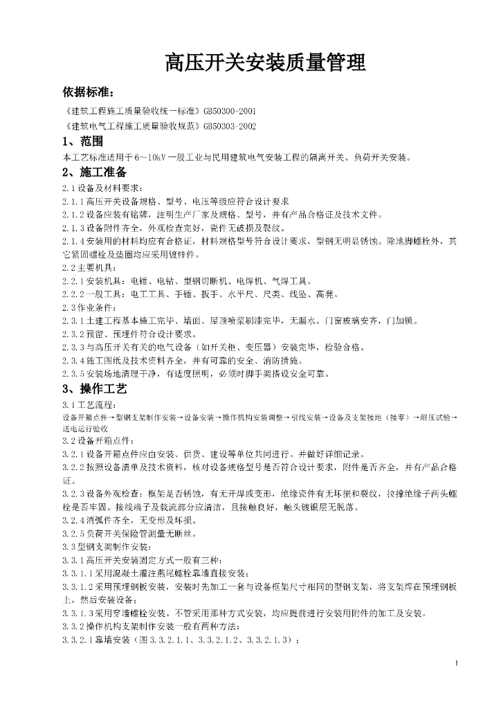 高压开关安装质量管理.doc