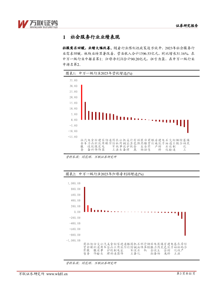 万联证券:社会服务行业2023年年度业绩综述报告:行业需求回暖,业绩边际改善.pdf