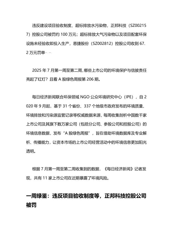 A股绿色周报(2025年第206期):11家上市公司暴露环境风险 正邦科技控股公司被罚100万元.pdf