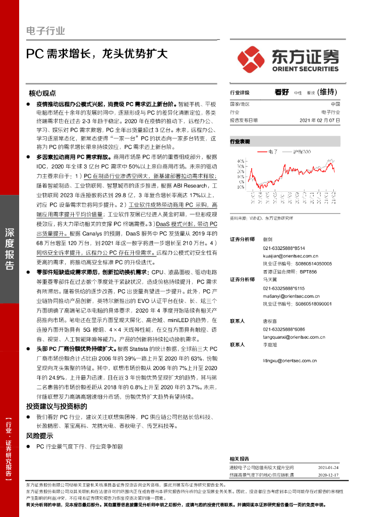 东方证券:电子行业:PC需求增长,龙头优势扩大.pdf