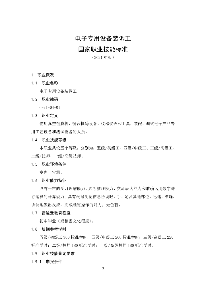 人力资源和社会保障部:电子专用设备装调工国家职业技能标准(2021年版).pdf