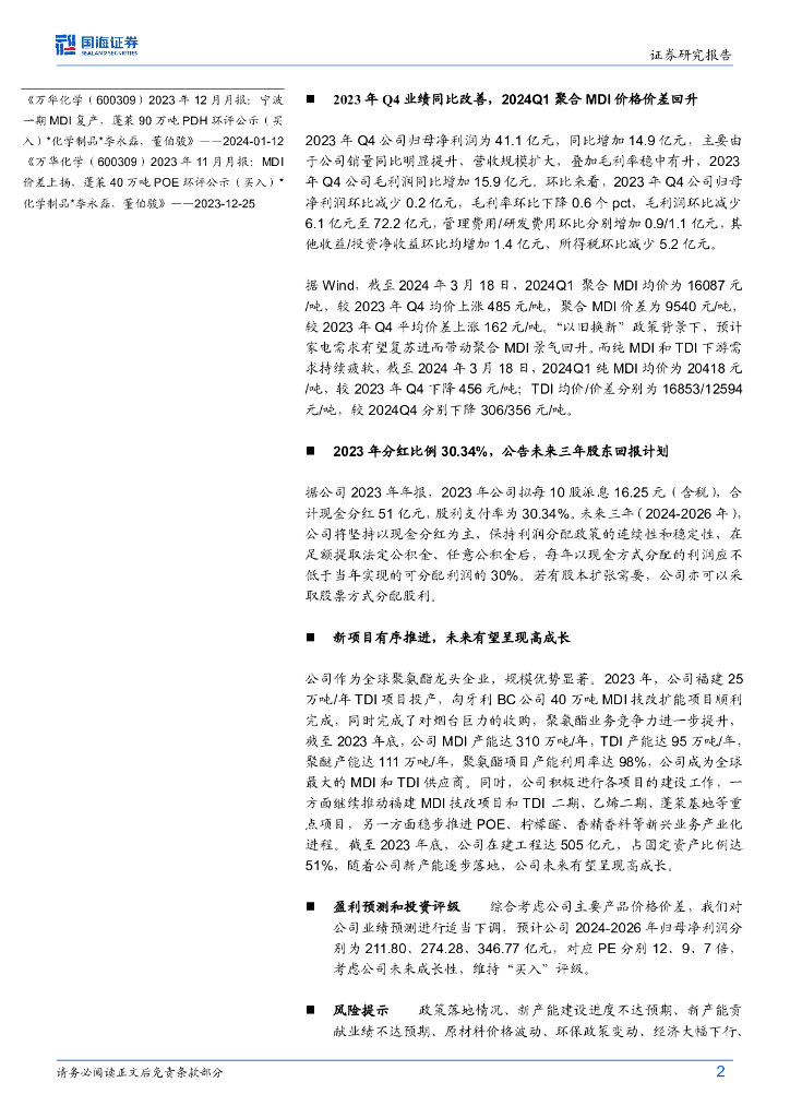 国海证券:万华化学(600309)-经营彰显韧性,新项目顺利推进支撑未来成长年年报点评报告2023.pdf