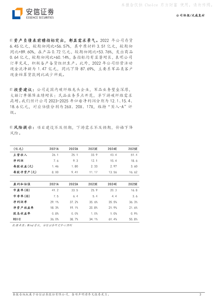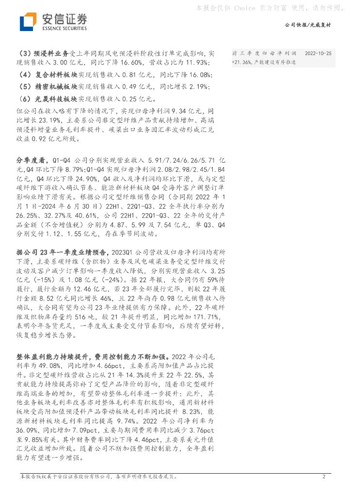 安信证券:光威复材(300699)-22年归母净利润+23.19%,多元布局赋能长期发展.pdf