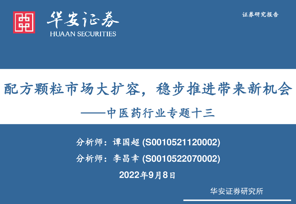 华安证券:中医药行业专题十三:配方颗粒市场大扩容,稳步推进带来新机会.pdf