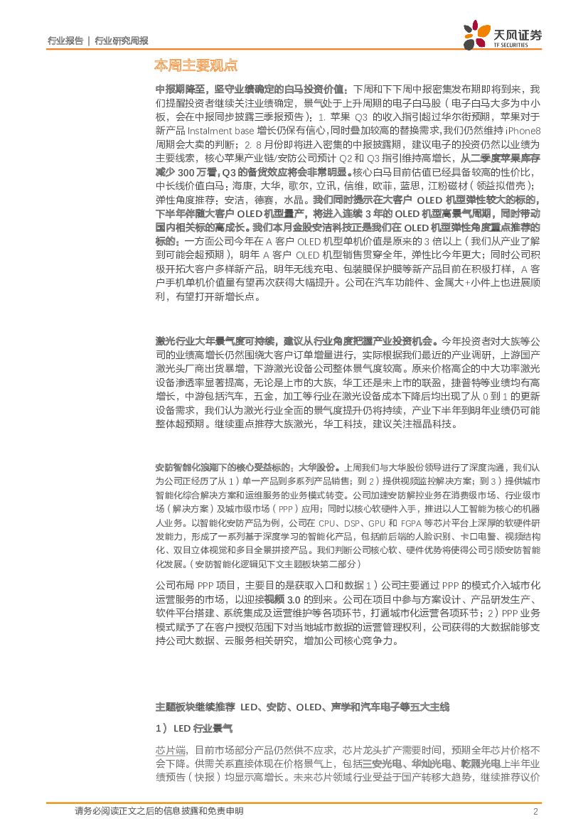 天风证券:电子行业研究周报:中报期将至,坚守业绩确定的白马股投资价值.pdf