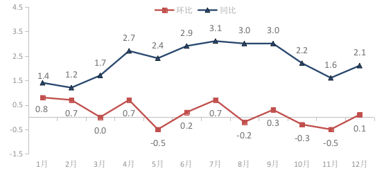 图1 2022年宁波市区居民消费价格月度涨跌幅度(单位:%)