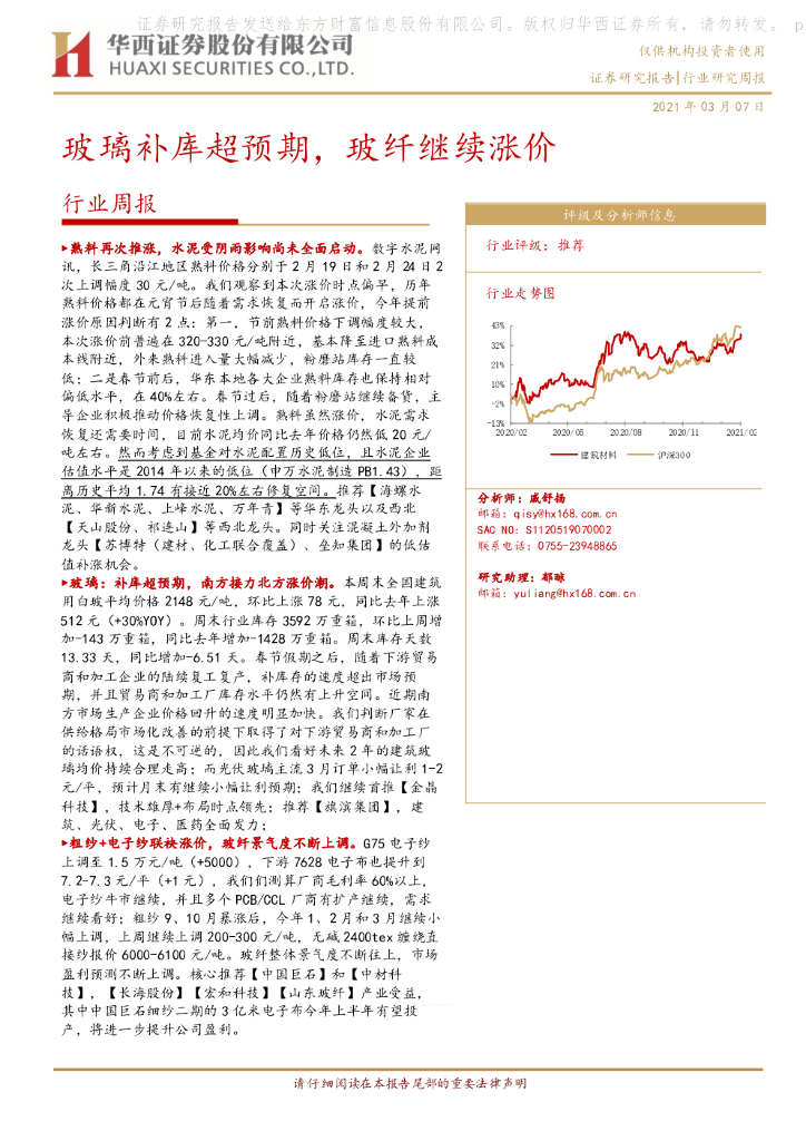 华西证券:建材行业周报:玻璃补库超预期,玻纤继续涨价.pdf
