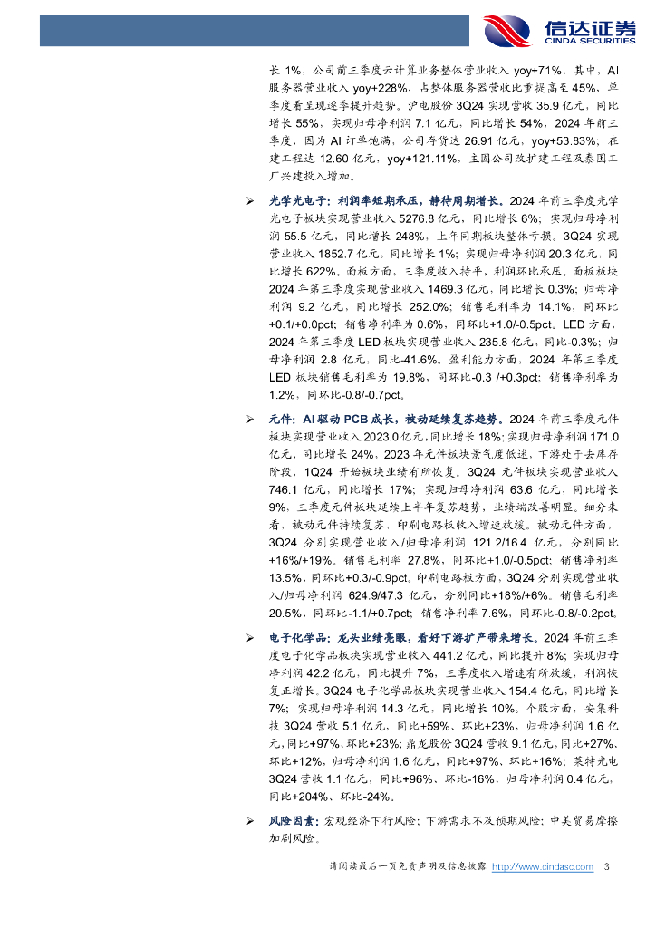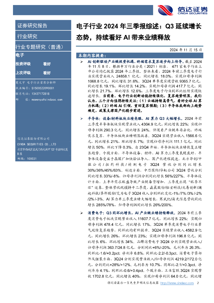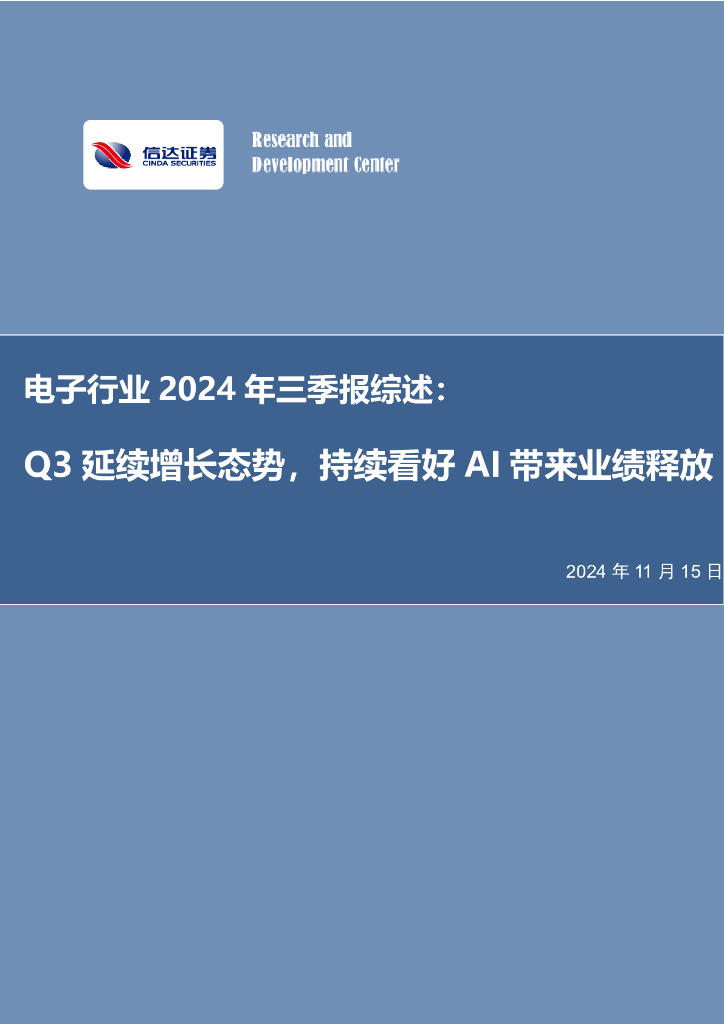 信达证券:电子行业2024年三季报综述:Q3延续增长态势,持续看好AI带来业绩释放.pdf