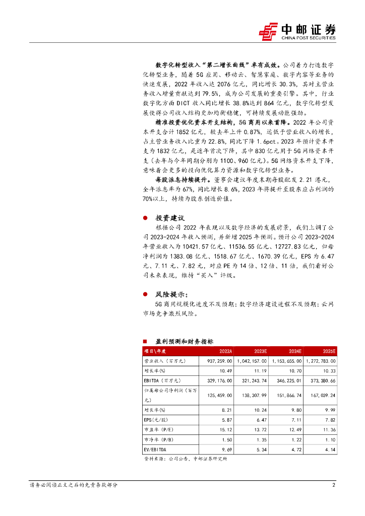 中邮证券:中国移动(600941)-2022年报点评:HBN业务持续高增长,数字化转型动能强劲.pdf