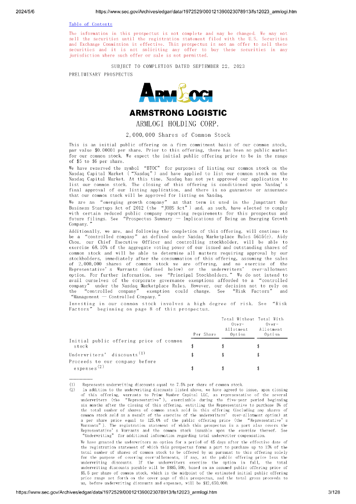 大方广物流公司Armlogi Holding(BTOC)美国纳斯达克交易所IPO上市招股说明书(Form S-1)(英文版).pdf
