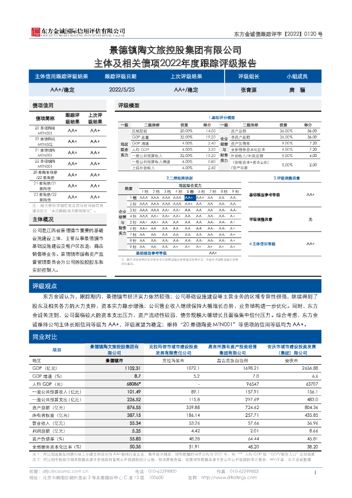 东方金诚:景德镇陶文旅控股集团有限公司主体及相关债项2022年度跟踪评级报告.pdf