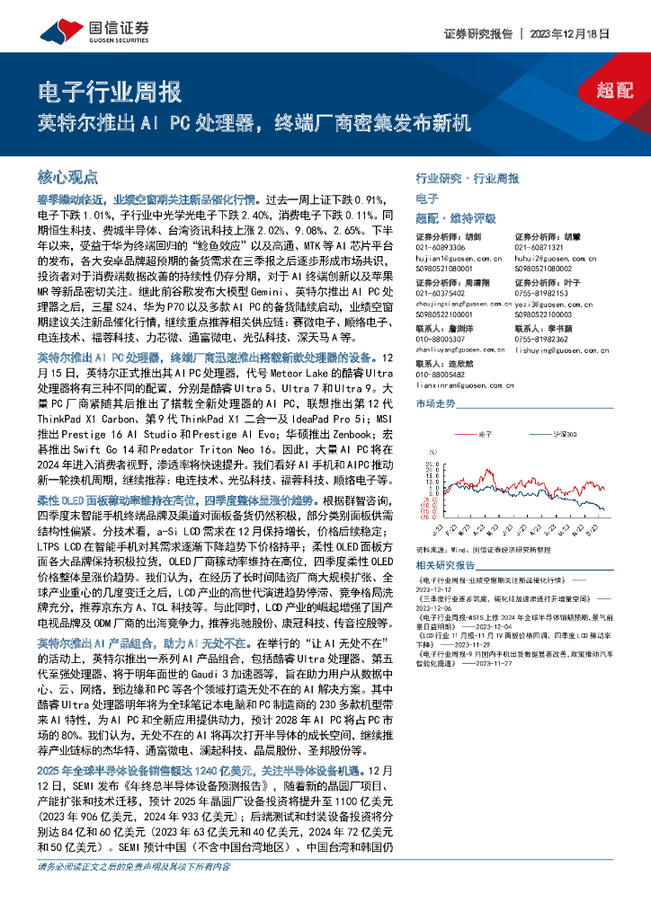 国信证券:电子行业周报:英特尔推出AI PC处理器,终端厂商密集发布新机.pdf