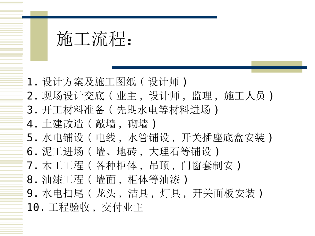 家装施工工艺流程及施工标准.ppt