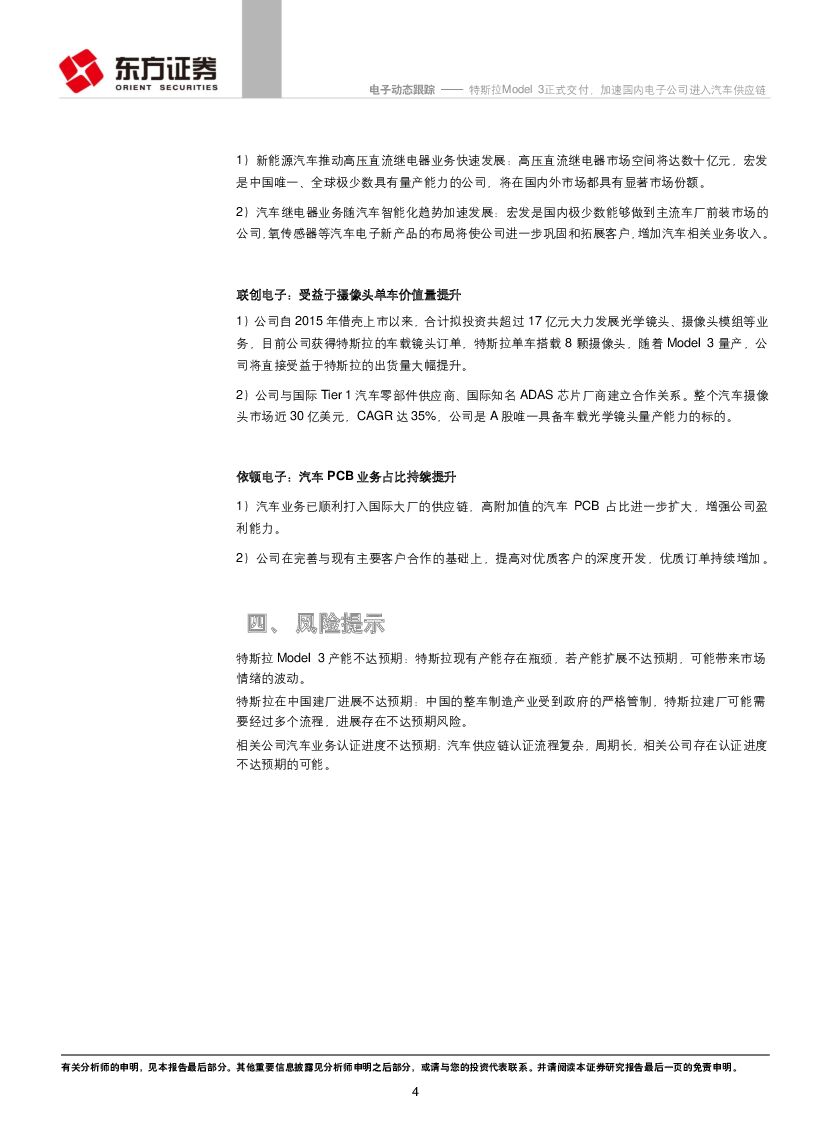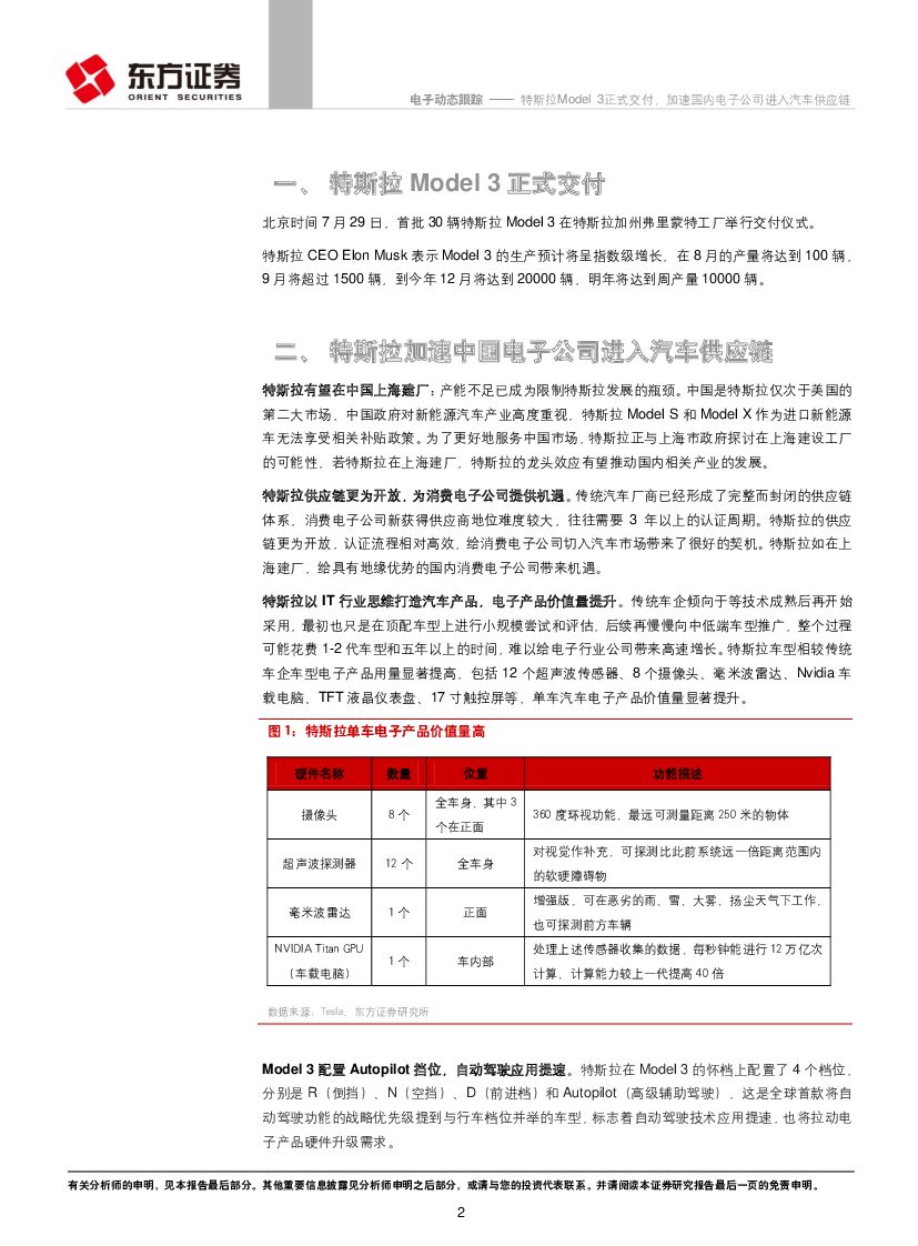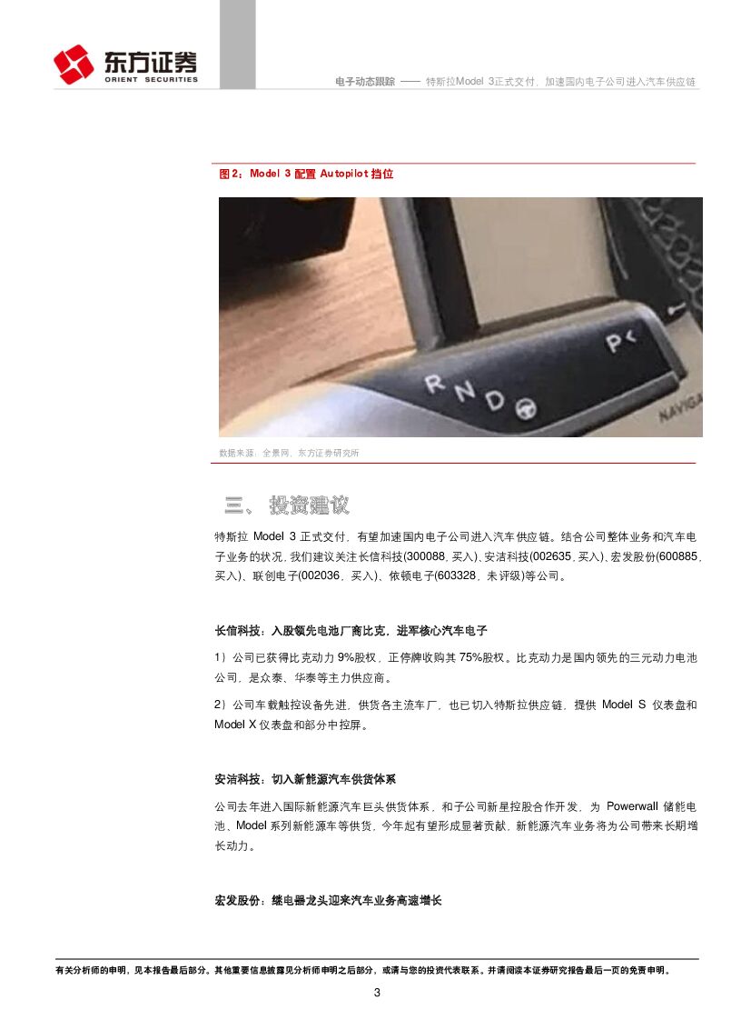 东方证券:电子行业动态跟踪:特斯拉Model 3正式交付,加速国内电子公司进入汽车供应链.pdf