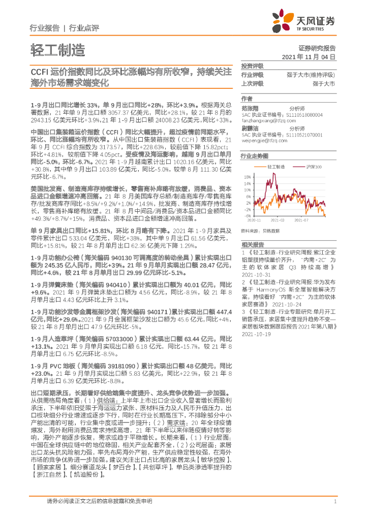 天风证券:轻工制造行业点评:CCFI运价指数同比及环比涨幅均有所收窄,持续关注海外市场需求端变化.pdf