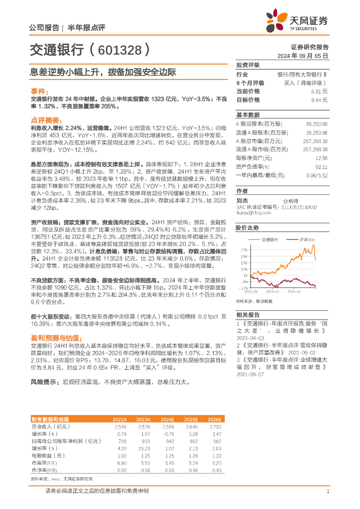 天风证券:交通银行(601328)-息差逆势小幅上升,拨备加强安全边际.pdf