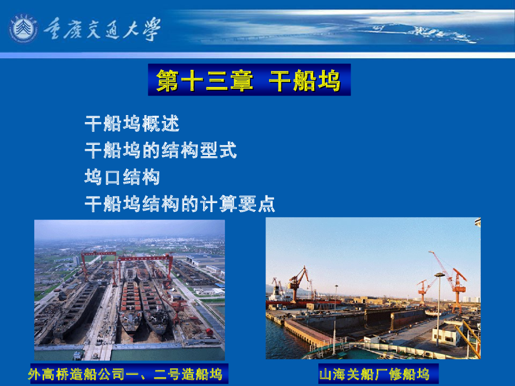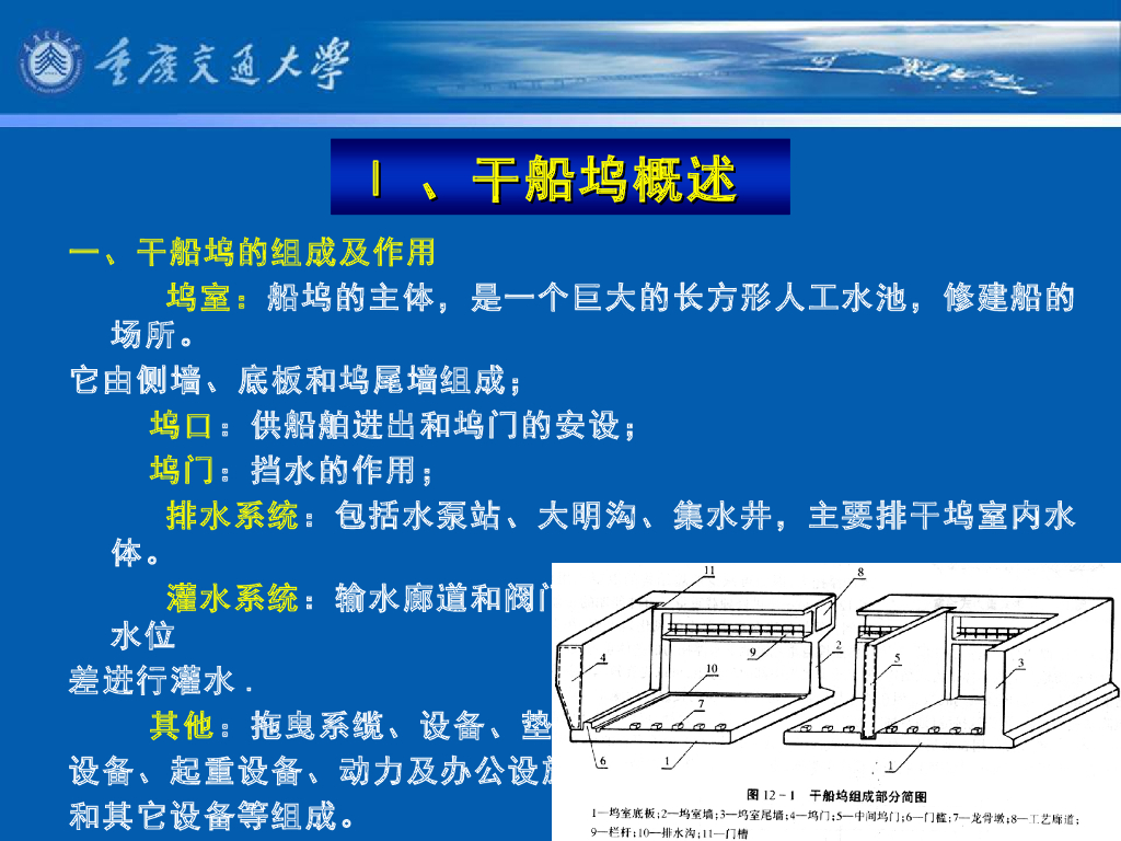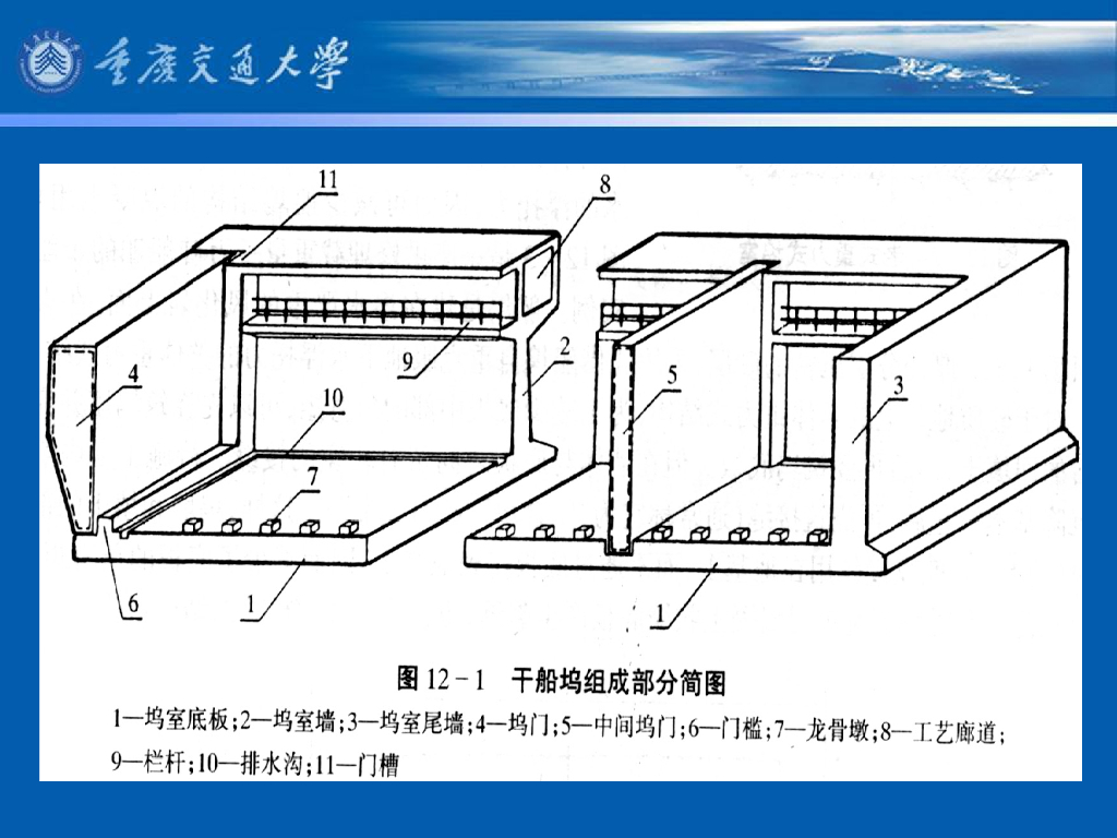 《港口水工建筑物》教学课件-船坞的类型;干船坞的组成及其作用.pdf