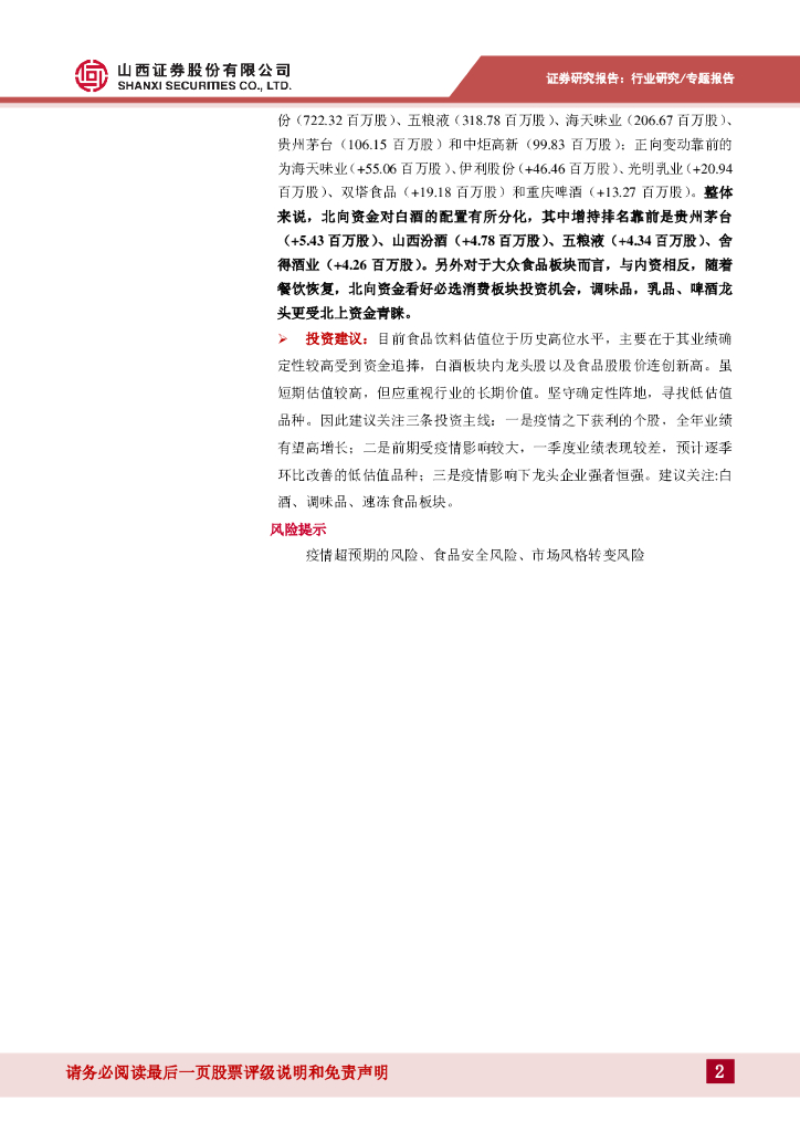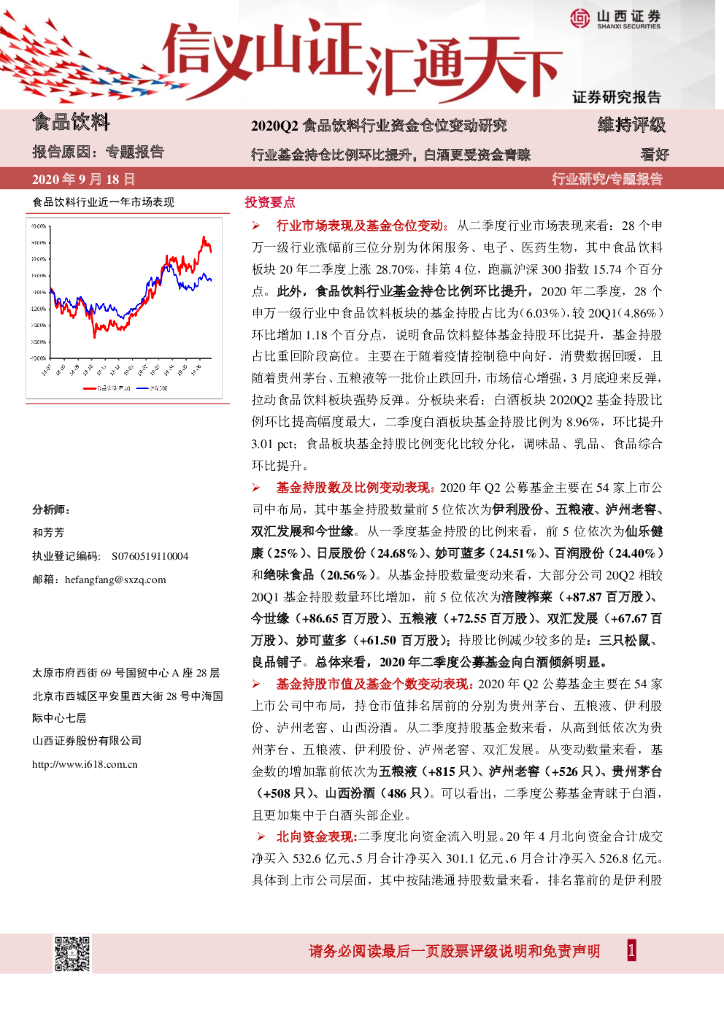 山西证券:2020Q2食品饮料行业资金仓位变动研究:行业基金持仓比例环比提升,白酒更受资金青睐.pdf