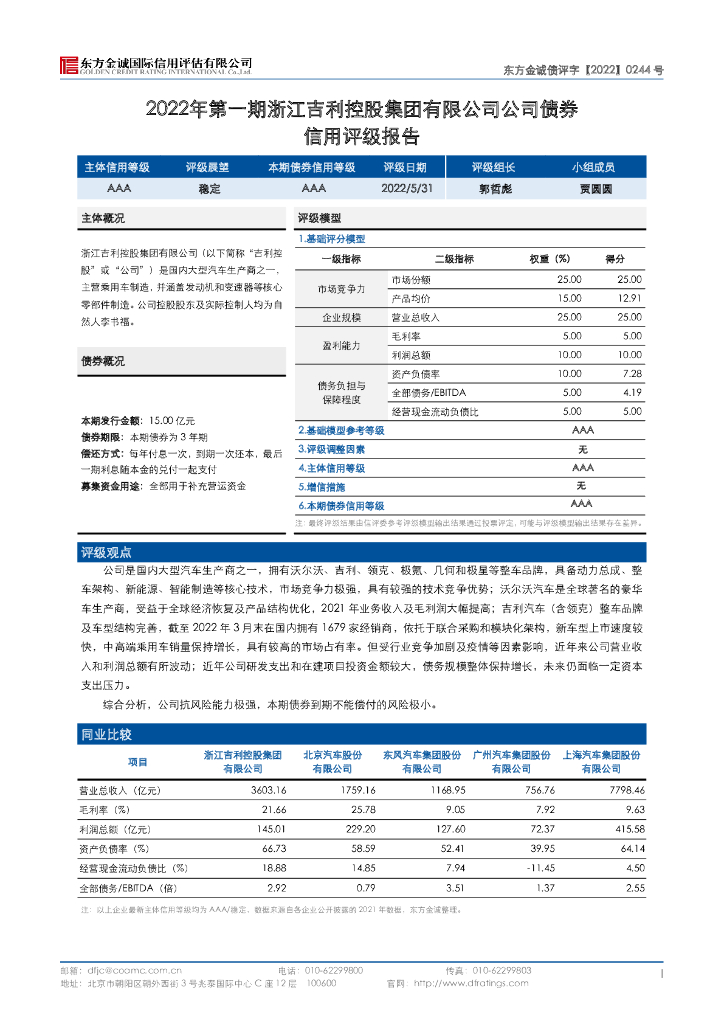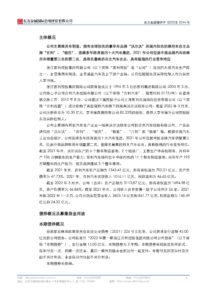 东方金诚:2022年第一期浙江吉利控股集团有限公司公司债券评级报告.pdf