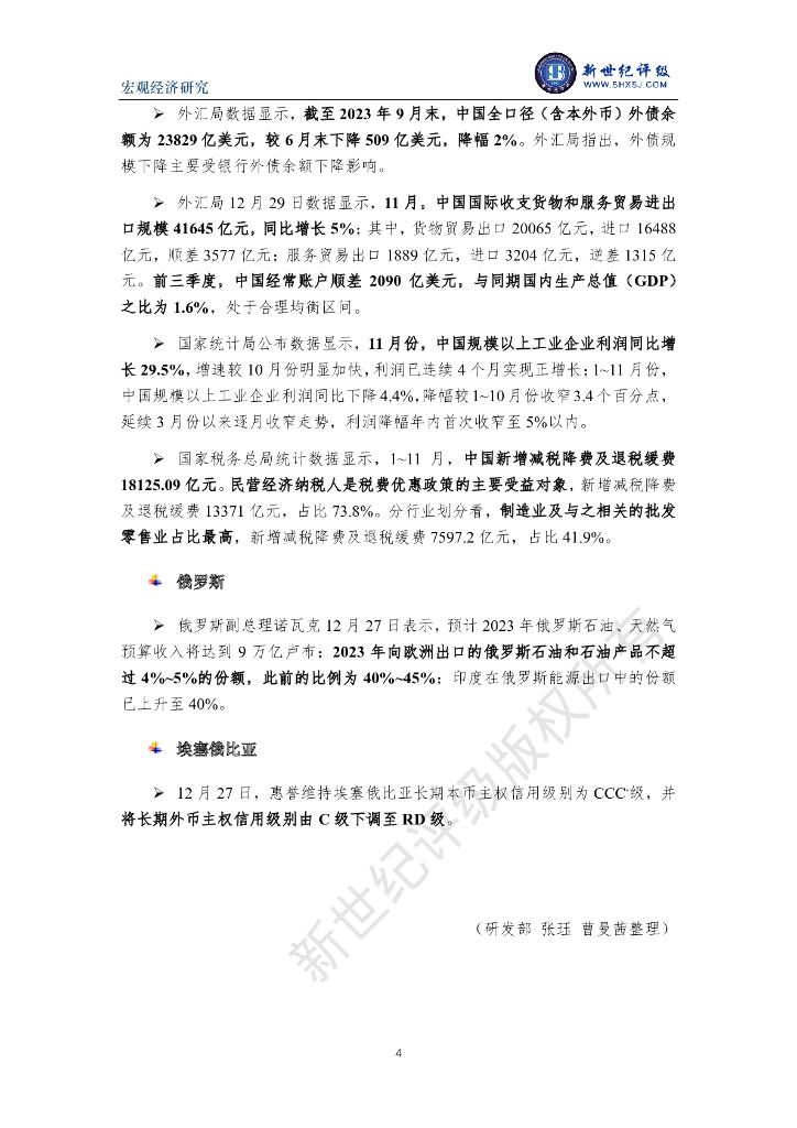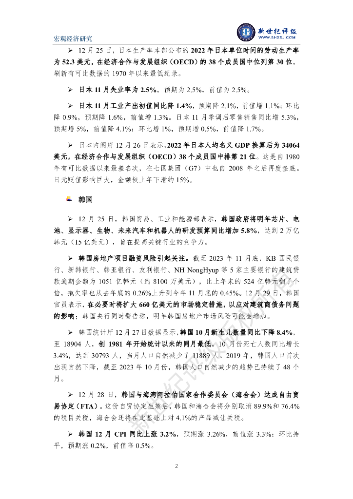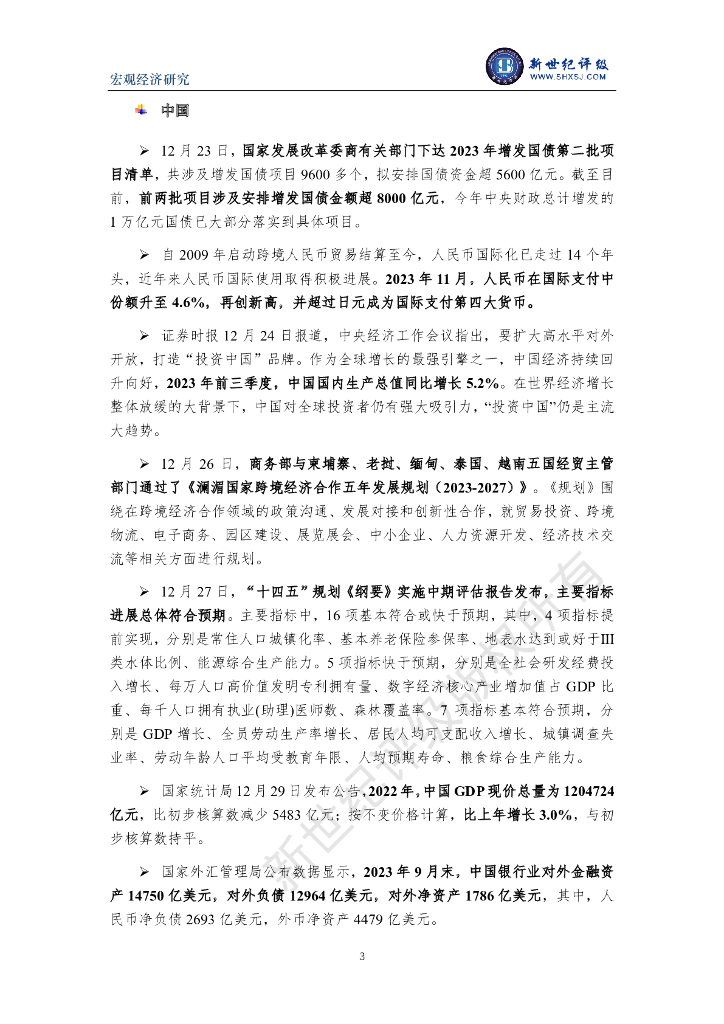 新世纪评级:人民币超过日元成国际第四大货币 韩国房地产风险加大——全球宏观经济周报(2023/12/23-12/29).pdf