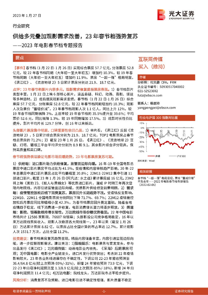 光大证券:互联网传媒2023年电影春节档专题报告:供给多元叠加观影需求改善,23年春节档强势复苏.pdf